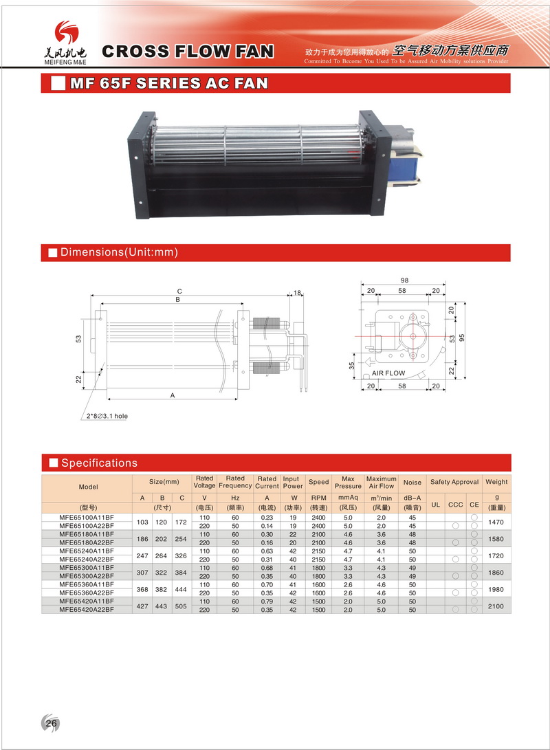 65系列橫流風(fēng)機1、軸 承:采用高精度滾珠軸承或含油軸承;